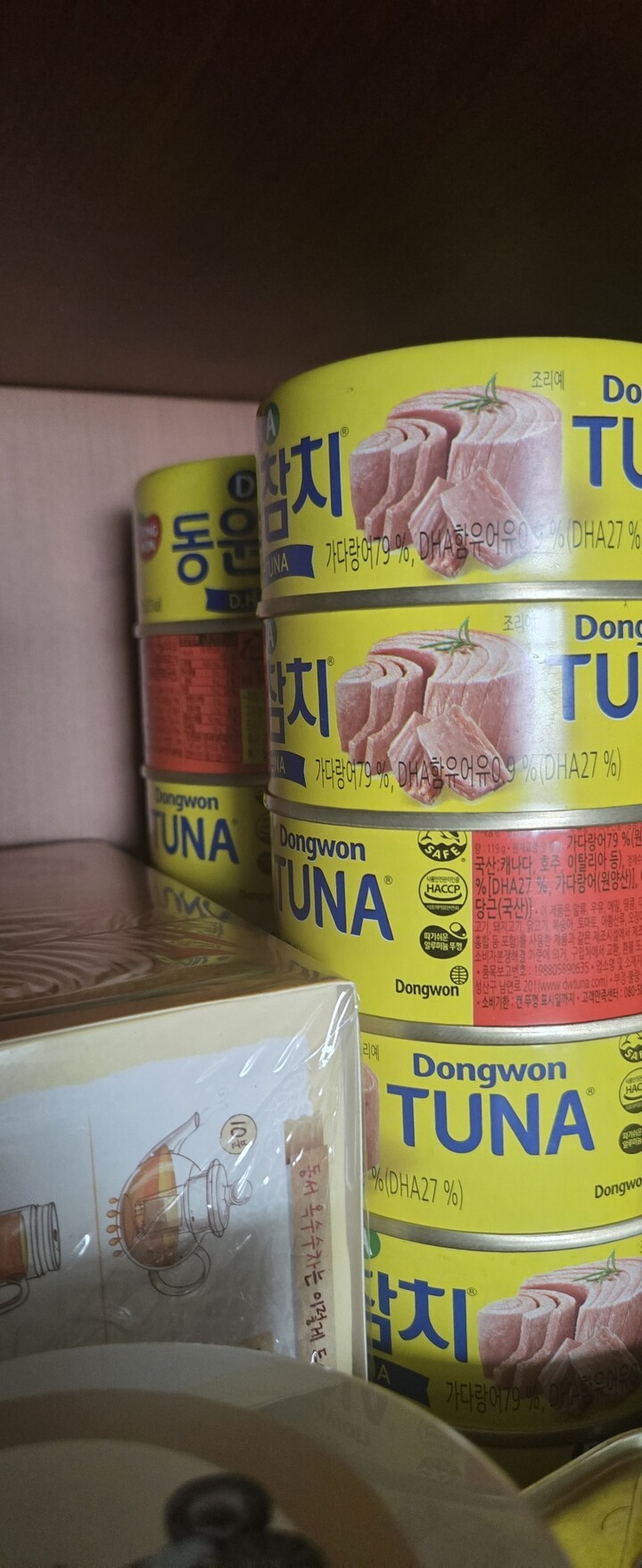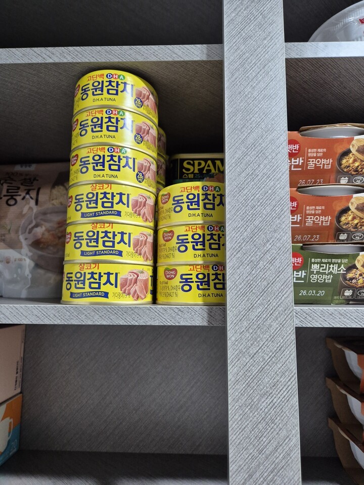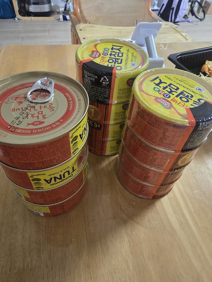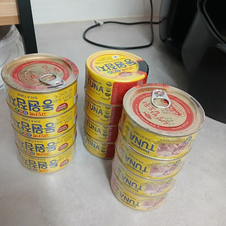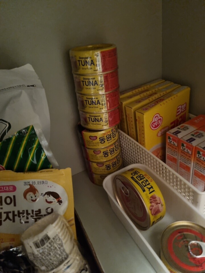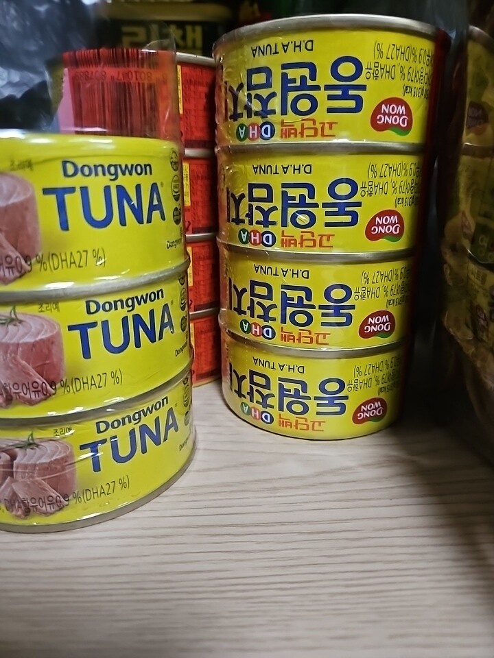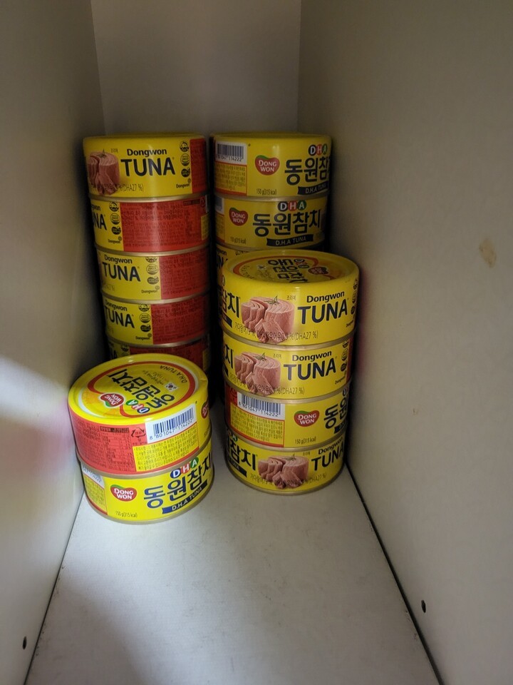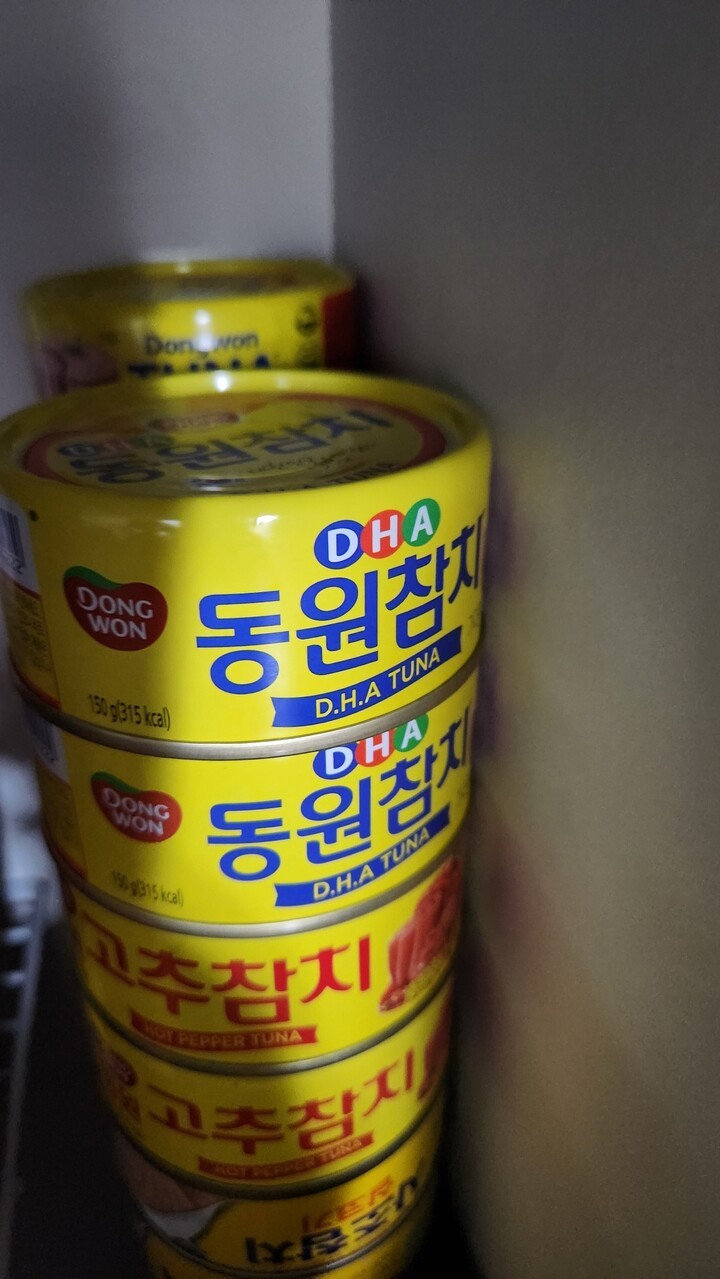 아들이 참치를 좋아해서 집에 늘 구비해 놓고 있어요 |